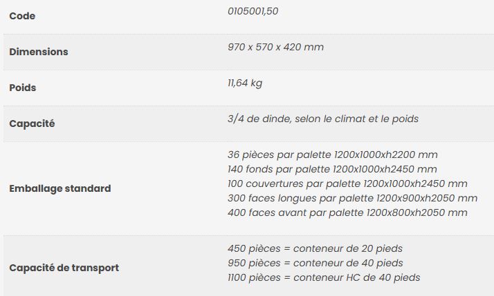 Conteneur monolithique pour dindes
