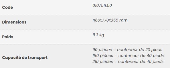 Sa structure légère permet une manipulation facile et il est emboîtable et empilable pour réduire le temps de travail et l’espace de stockage.