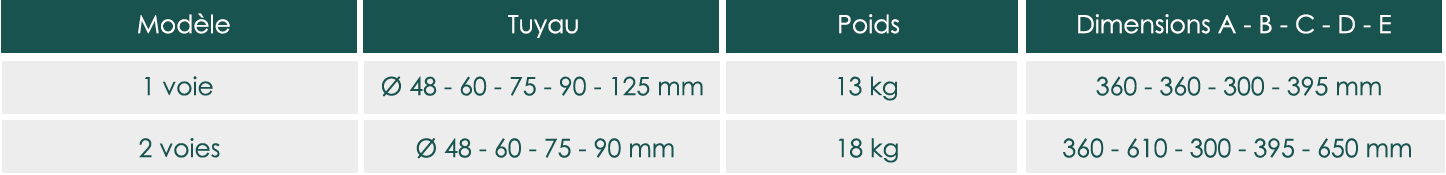 Elles sont disponibles pour 1 ou 2 lignes, soit trémie de départ silo avec roulement, soit trémie intermédiaire pour le deuxième silo. Disponibles en Ø 48, 60, 75, 90 et 125 mm.